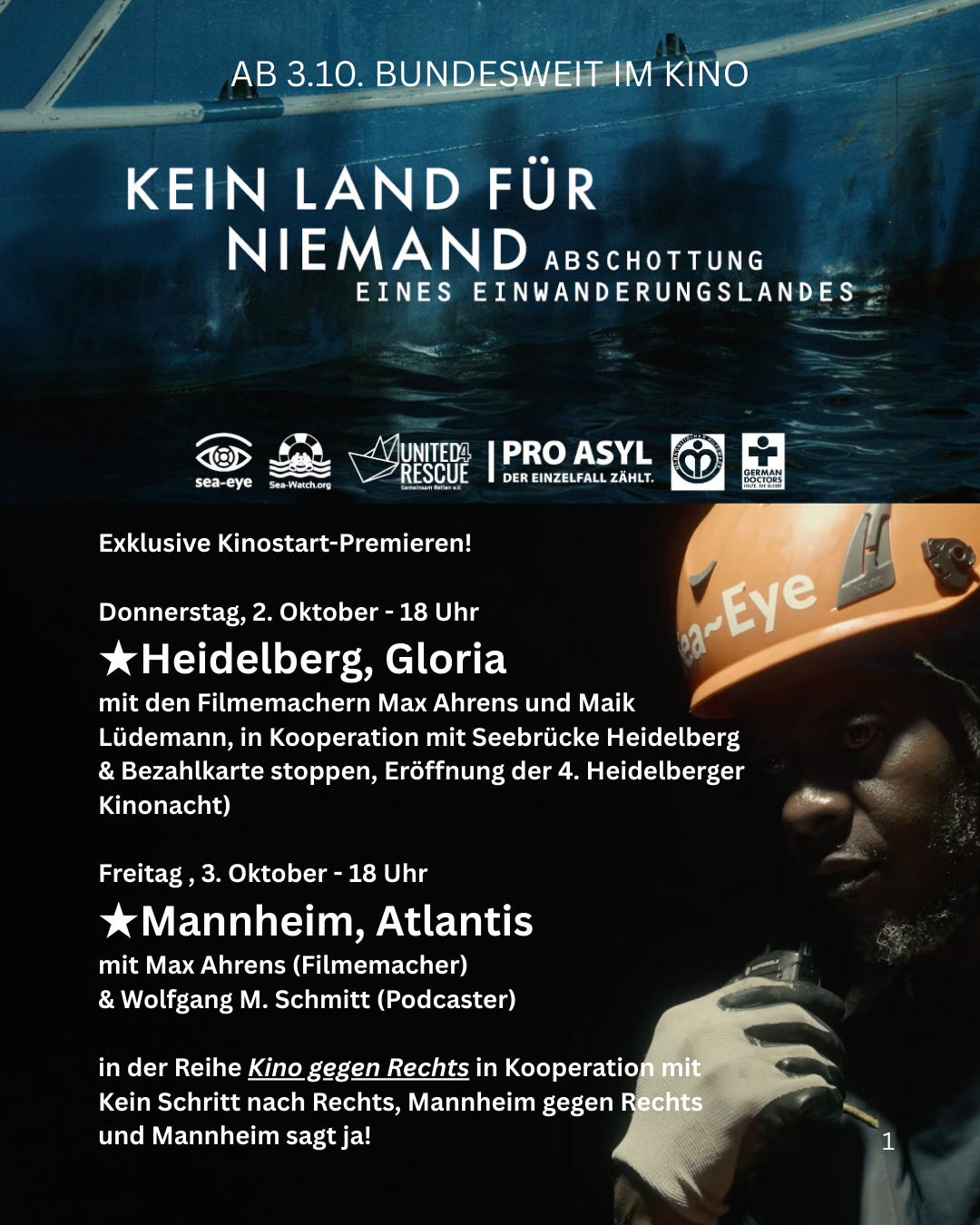 Heidelberg, Kino Gloria, Do., 02.10., 18 Uhr - mit Q&A mit den Filmemachern Max Ahrens und Maik Lüdemann und Seebrücke Heidelberg, Sea-Eye Heidelberg und Bezahlkarte stoppen!